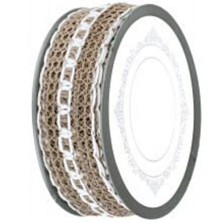 Horgolt szalag csipkés 35mm x 10m - Natúr/fehér