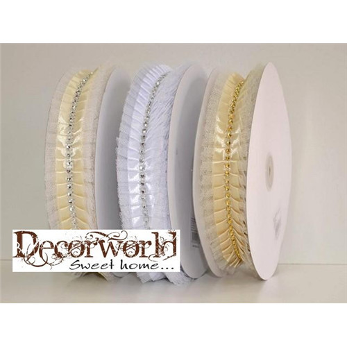 Szatén szalag strasszal és tüllel 4cm x 10m - Több színben