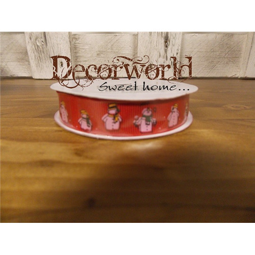 Dekorációs szalag hóemberes piros 15mm/10m