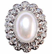 Strasszal kirakott bross 25x30 mm - Fehér/Ezüst /DB