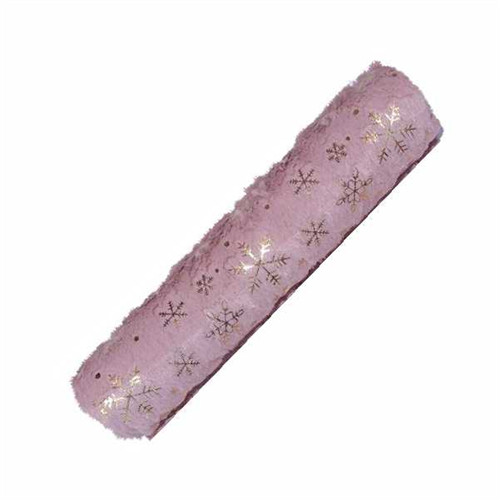 Műszőrme anyag karácsonyi mintás 28cm/3m - Vintage mályva/arany