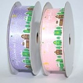 Szalag textil "Merry Christmas" Havas házak 22mm x 10m - Lila
