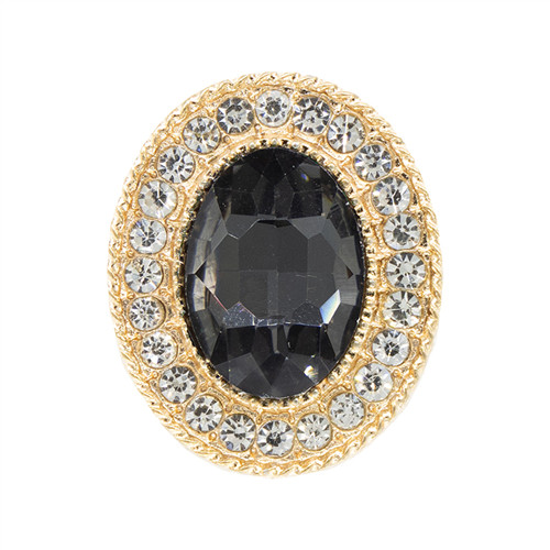 Strasszal kirakott bross ovál alak 24x20 mm - Fekete/Ezüst/Arany /DB