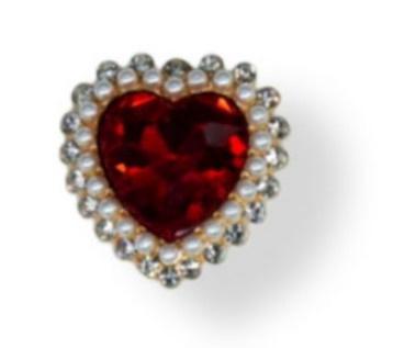 Strasszal kirakott bross szív alak 23 mm S/10 - Piros