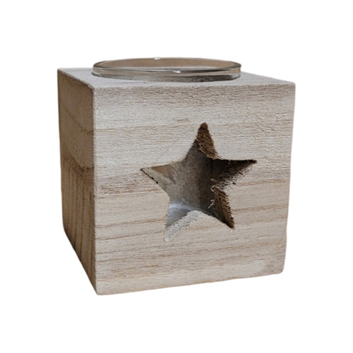 Fa Mécsestartó+üveg uszadékfa/csillag 8cm