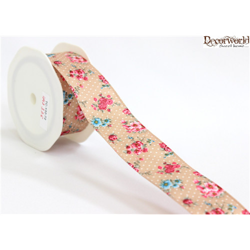 Textil szalag drótos virágos 25mm/10m - Drapp
