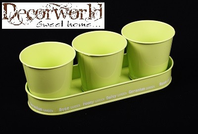 Bádog kaspó 3db + tálca - Pasztell zöld
