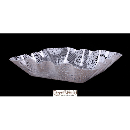 Műanyag tál négyszögletes csipke 18cm - Fehér