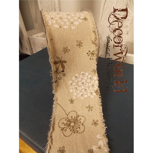 Szalag vászon szürke/fehér virágos 62mmx10m