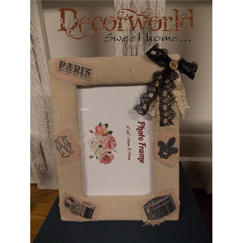 Fa képtartó krém/fekete masni 20x15cm