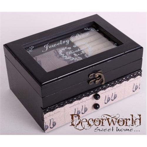 Fa+üveg ékszertartó doboz krém/fekete 21,5x17cm