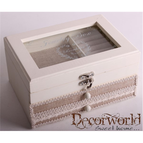 Fa+üveg ékszertartó doboz zsákvászon 21,5x17cm