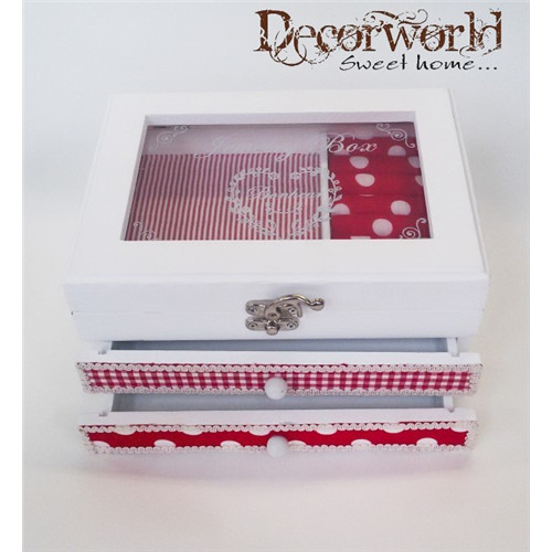 Fa+üveg ékszertartó doboz pios pöttyös 21,5x17cm