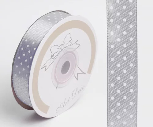Szalag Szatén Pöttyös 15 mm x 25 m - Szürke