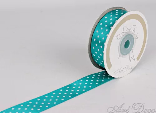 Szatén szalag pöttyös 25mm/25m - Tűrkíz