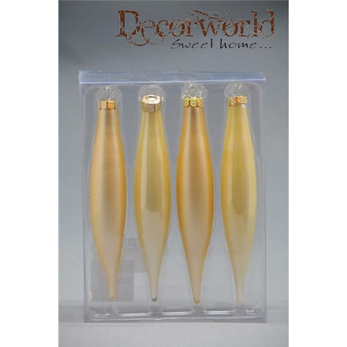 Díszcsepp üveg 15cm - Krém matt&fényes s/4