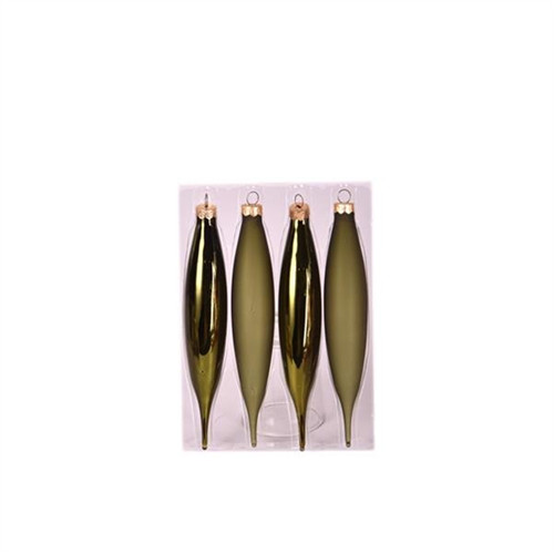 Díszcsepp üveg 15cm sötét zöld matt&fényes S/4