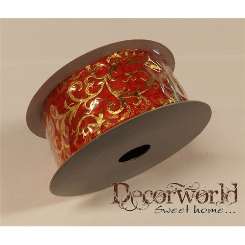 SZALAG 38MM/10M INDÁS TEXTIL PIROS-ARANY