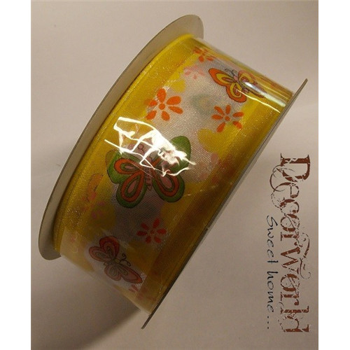 Szalag pillangos textil 3,8cmx10m sárga-narancs-pink-zöld