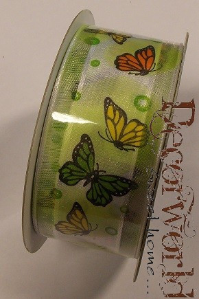 Szalag pillangós textil 3,8cmx10m zöld-narncs-sára