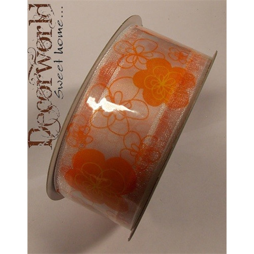 Szalag virágos textil 3.8x10m narancs-fehér