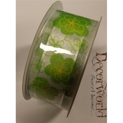 Szalag virágos textil 3.8x10m zöld-fehér