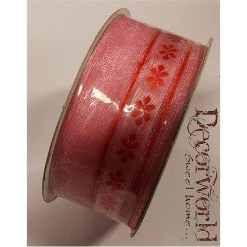 Szalag organza virágos 3,8cm x10m - Piros-rózsaszín