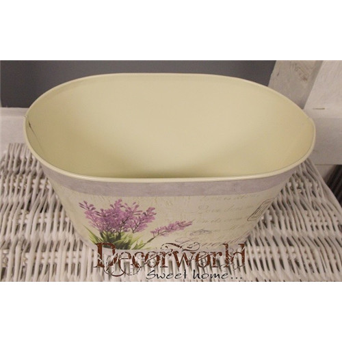 Kaspó ovális levendulás bádog 22x12,5x11,5cm krém-zöld-lila