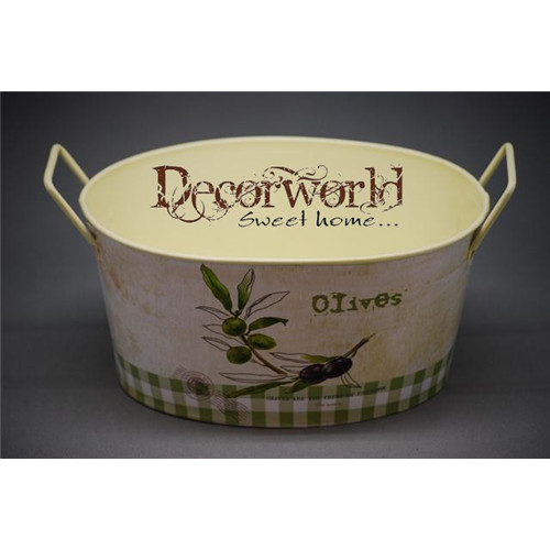 Kaspó füles ovális bádog23x15,5x11,5cm krém-zöld-lila