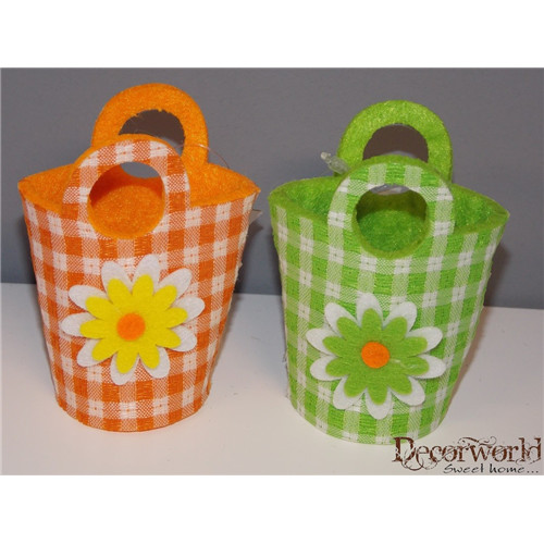Tasak virágos-kockás filc5,5x6cm - Zöld, narancs