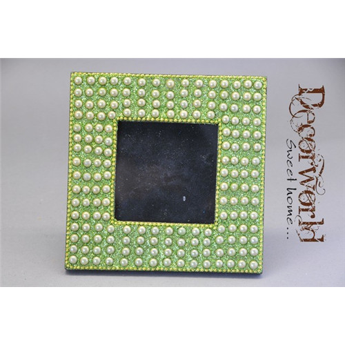 Fényképtartó gyöngyös glitteres műanyag 10x10 cm zöld