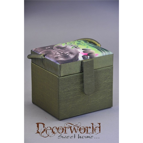 Ékszertartó doboz füles Buddhás textil 10x9x9,5cm zöld-fekete