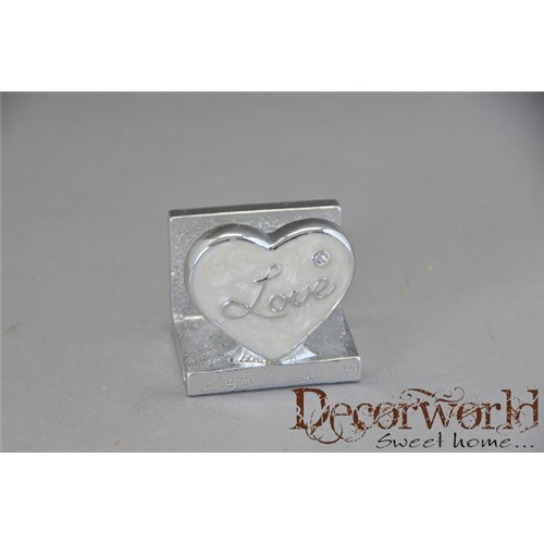 Szalvétatartó szív alakú poly 5cm - Ezüst-fehér