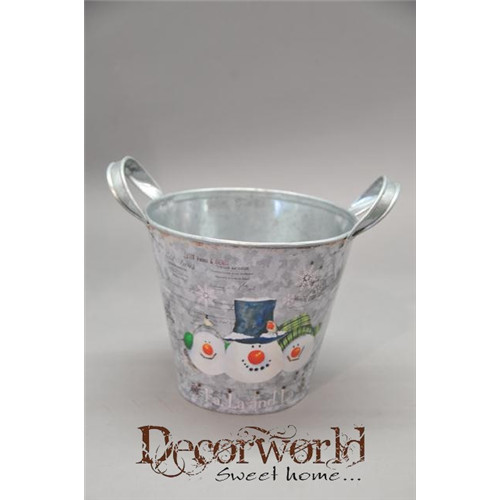 Kaspó füles hóemberek 17x14,5cm fehér-zöld-narancs-ezüst