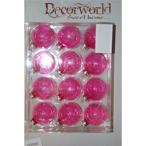 Gömb üveg áttetsző ezüst kupakkal 5cm rózsaszín S/12