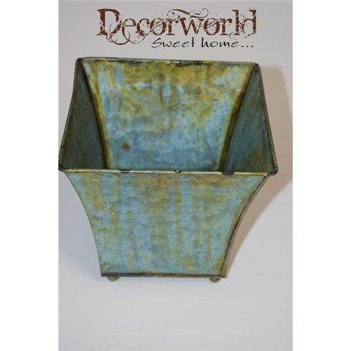 Kaspó szögletes bádog 13x13x11x9x9 antikolt zöld