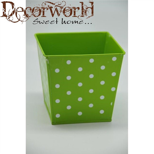 Kaspó Pöttyös szögletes bádog 18,2x14x16cm zöld-fehér