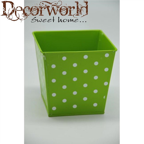 Kaspó Pöttyös szögletes bádog 21,5x16,5x17,2cm zöld-fehér