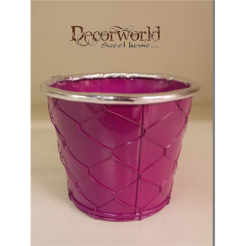 Kaspó dróthálós bádog 11,5x8,5x9,5cm - Lila-ezüst