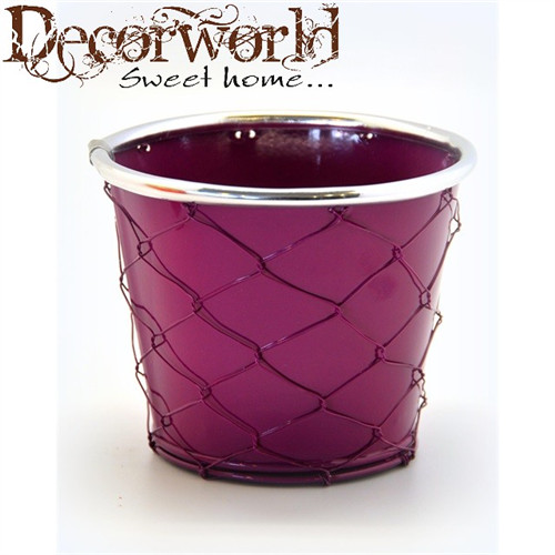 Kaspó dróthálós bádog 16x11,5x14cm lila-ezüst SSS Akció