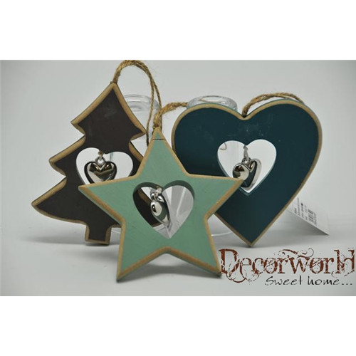 Szív dísz akasztós szövet kék-barna 9x11cm
