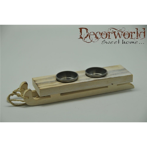 Gyertyatartó szánkó fa 6x35x4 cm - Natúr-ezüst