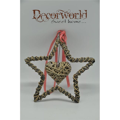Csillag csengővel dísz akasztós fa közepes natúr