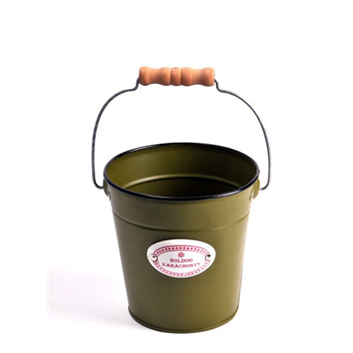 Kaspó füllel kerek fém 13x13cm - Zöld