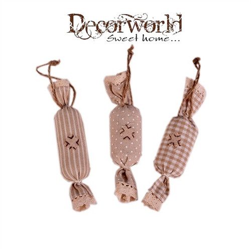 Szaloncukor dísz akasztós textil 4x16cm natúr 3 féle