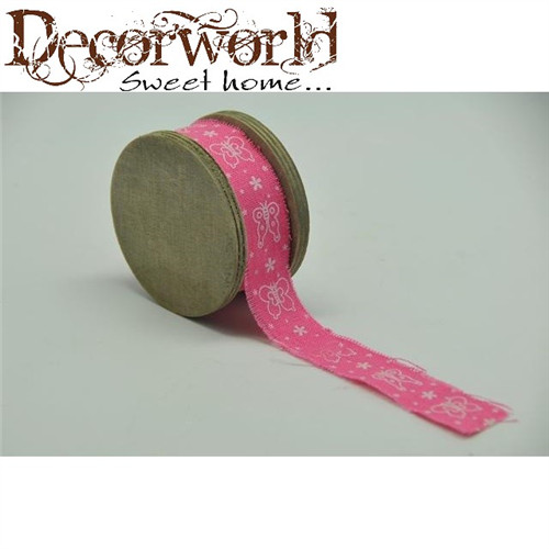 Szalag pillangó mintás textil 7x7x4,3cm x 3m - Rózsaszín