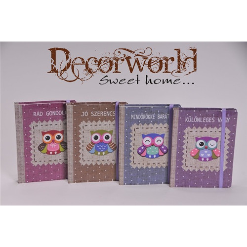 Füzet bagoly mintával papír 11x15cm színes 4 féle