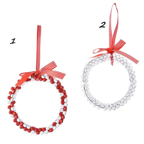 Kerek dísz fém 10cm - Piros/fehér 2 féle