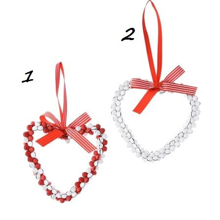 Szív dísz fém akasztós 10cm - Piros/Fehér 2 féle