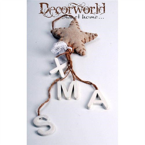 Csillag feliratos akasztós dísz fa-textil 10x32cm fehér